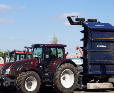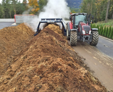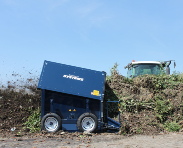 With a rotor length of 3.5 m and a heap cross-section of about 4 m², Compost Systems has expanded its Agroline with the introduction of the CMC ST350 compost turner for tractors above 100 hp. With or without the option of a super creeper gear, the CMC ST350 works well with a push axle (option) even without creeper speed. This gives it an added advantage with the rotor being able to be lifted from the heap at any time. As with the smaller models the classic construction on top of a trailer ensures that lateral forces are stabilised and not transferred to the tractor.